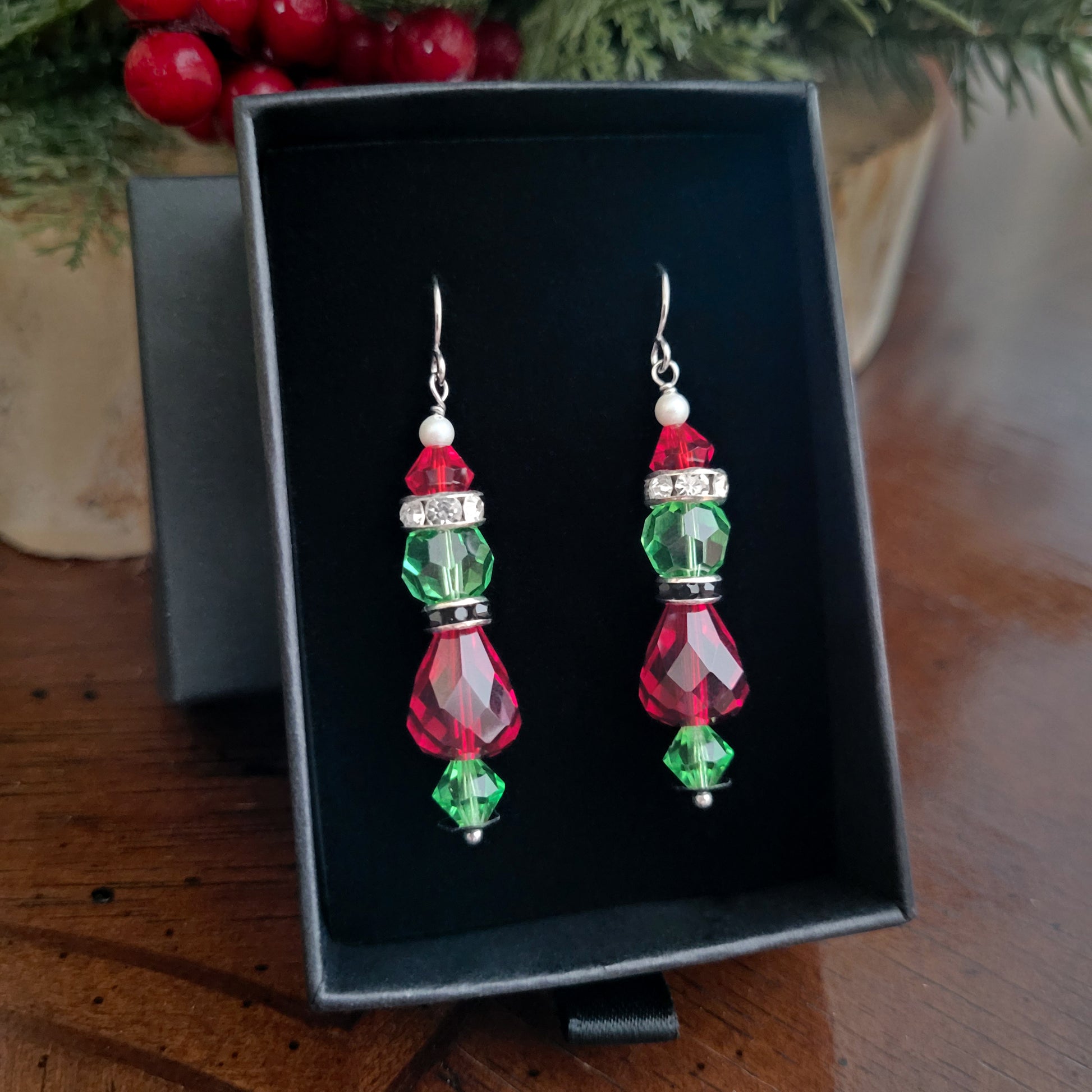 You'll be the one stealing Christmas... attention that is ...when you show up in these super cute crystal earrings, the perfect holiday accessory! Shipped in a black drawer-style jewelry gift box, these cuties come ready for gifting to all your favorite people. Choose from 2 sizes, large or small.